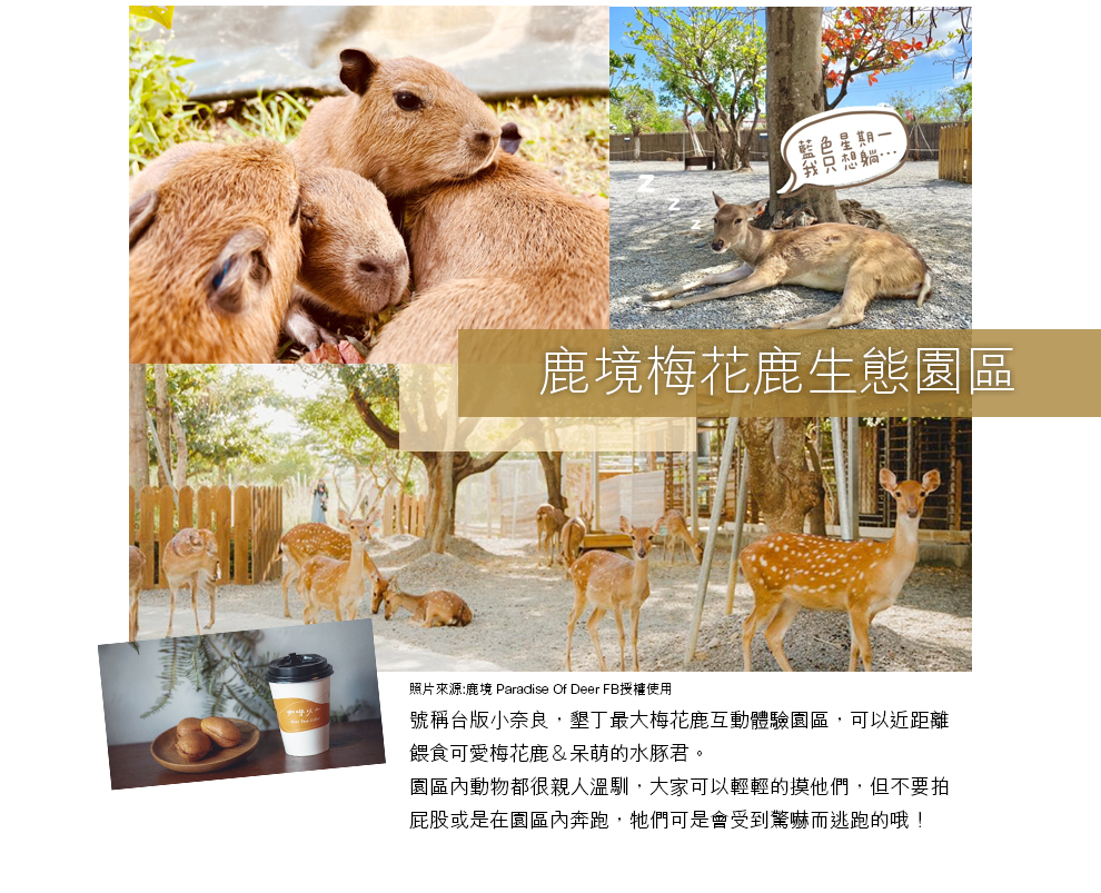 號稱台版小奈良,墾丁最大梅花鹿互動體驗園區,可以近距離餵食可愛梅花鹿&呆萌的水豚君。
