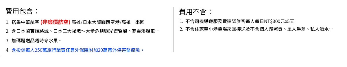 5.為顧及旅客人身安全與相關問題,在日本旅遊行程期間恕無法接受脫隊要求。