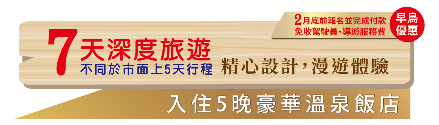 7.若遇大風雪、火山、颱風、地震等不可抗力情況,本公司將以安全順利為優先考量下,變更相關行程。