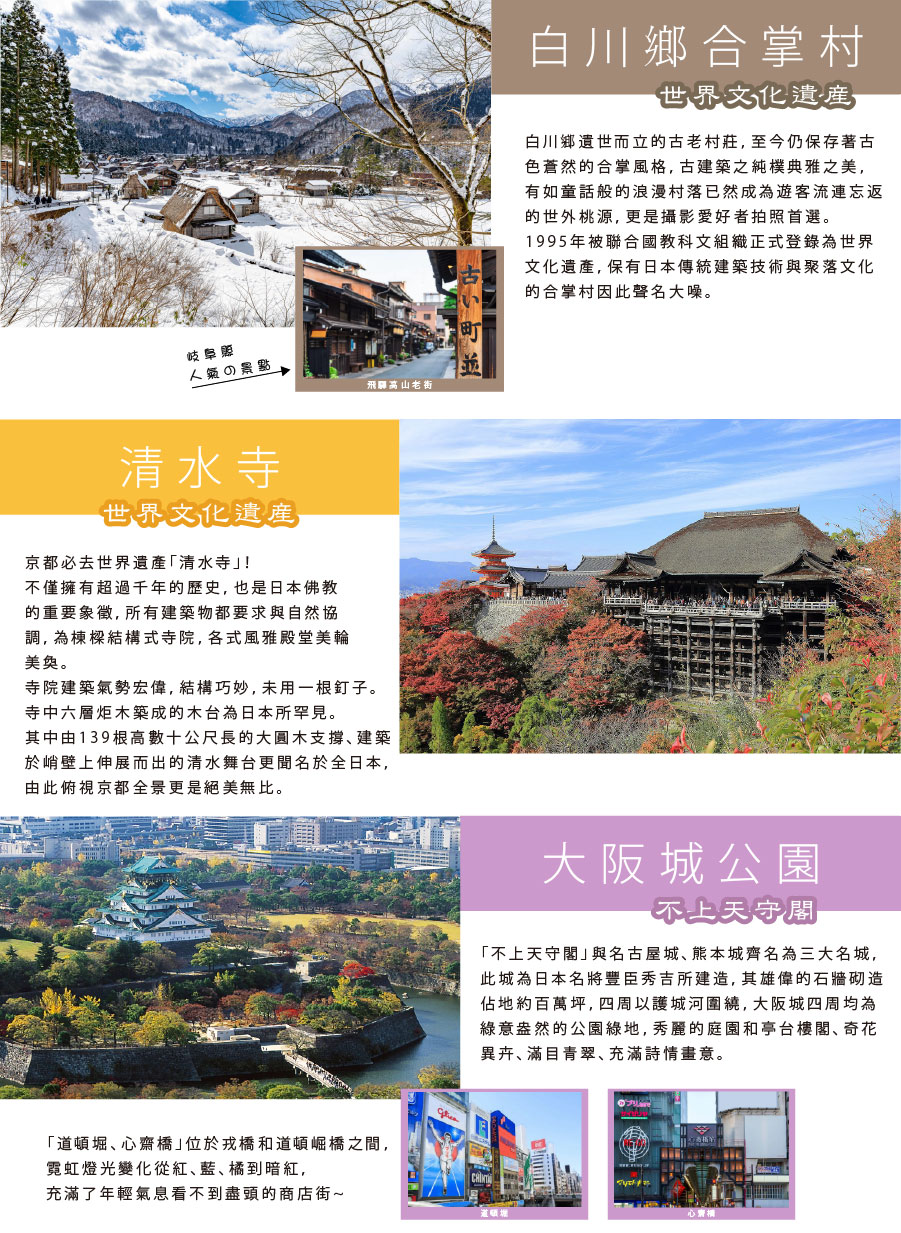 3.行程及餐食將會視情況(如季節、預約狀況、觀光地區休假及住宿飯店地點)調整。