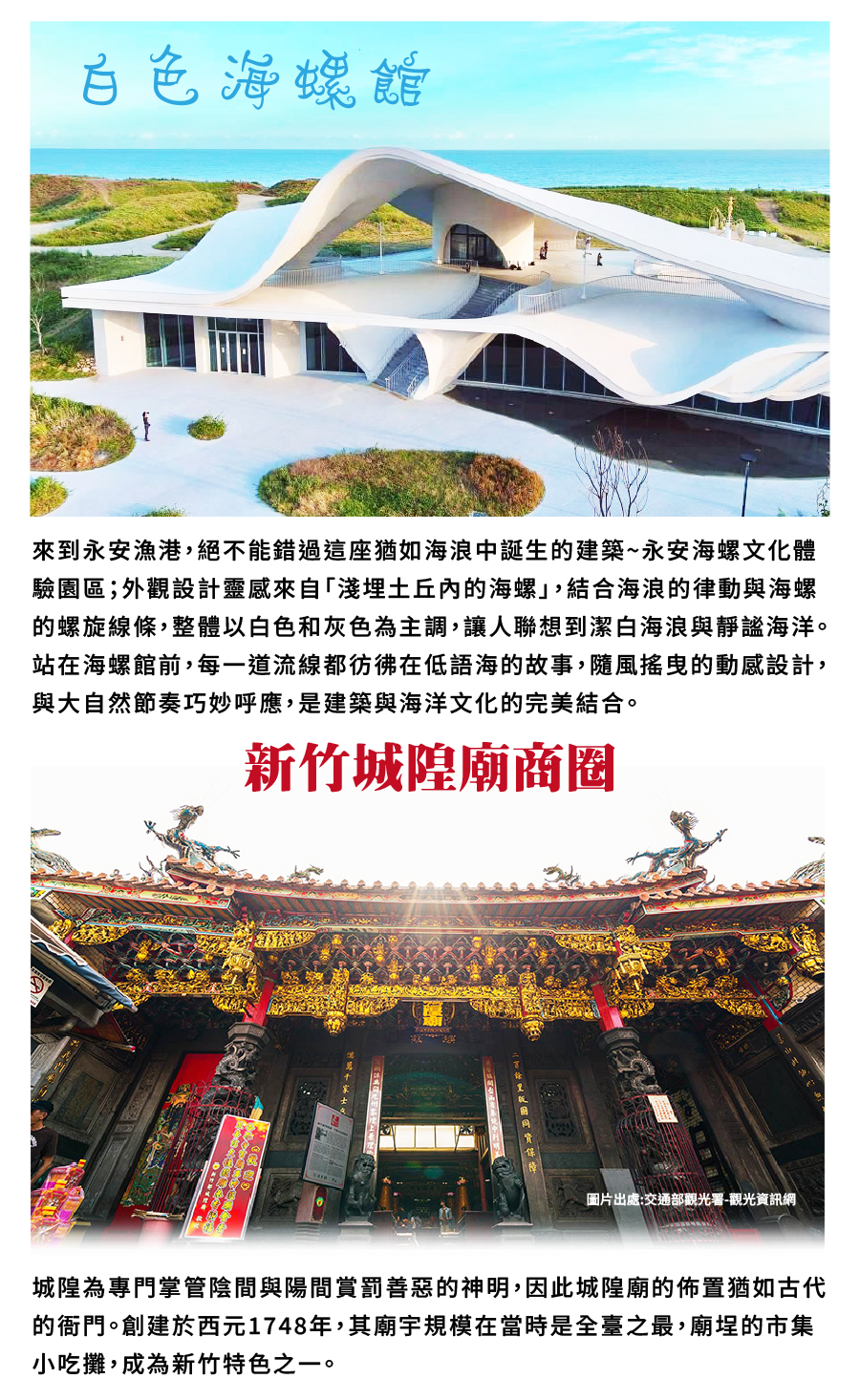 集合出發 ➜超美白色海螺館 ➜新竹城隍廟商圈 (午餐敬請自理)➜詩舒曼生活美學館 ➜賦歸高雄